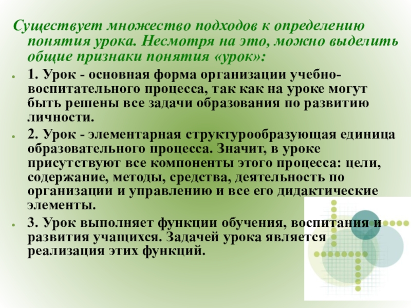Слайд 5Существует множество подходов к определению понятия урока. Несмотря на это, можно