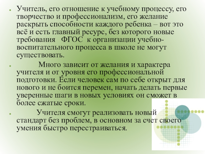 Учителя смогут реализовать новый стандарт без проблем, в основном за счет своего умения быстро перестраиваться.