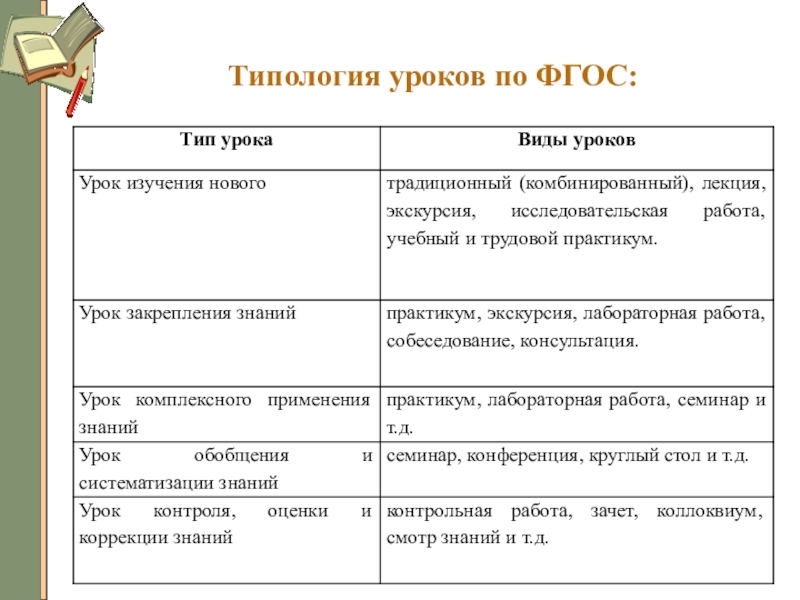 Типология уроков по ФГОС: