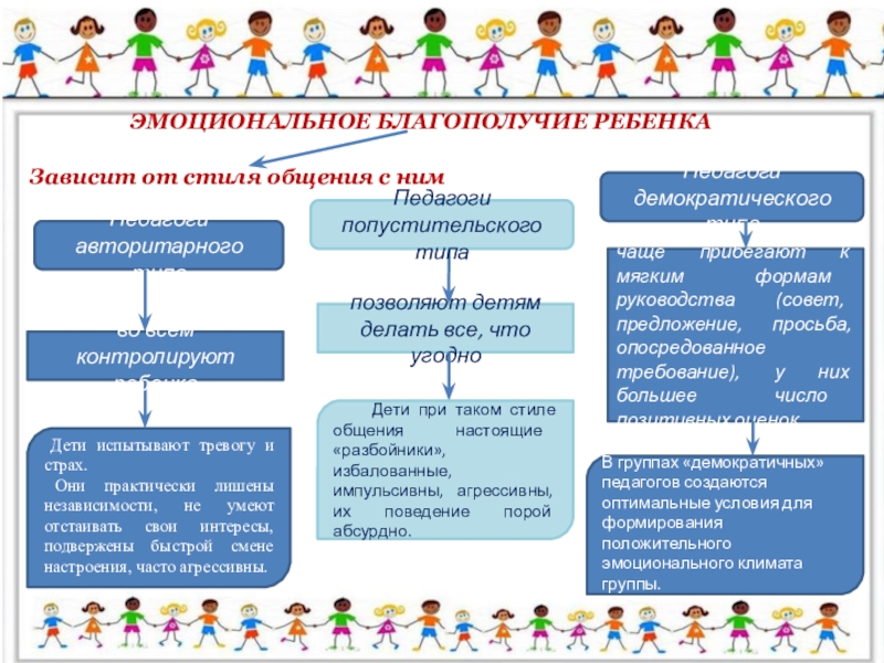 В группах «демократичных» педагогов создаются оптимальные условия для формирования положительного эмоционального климата группы.