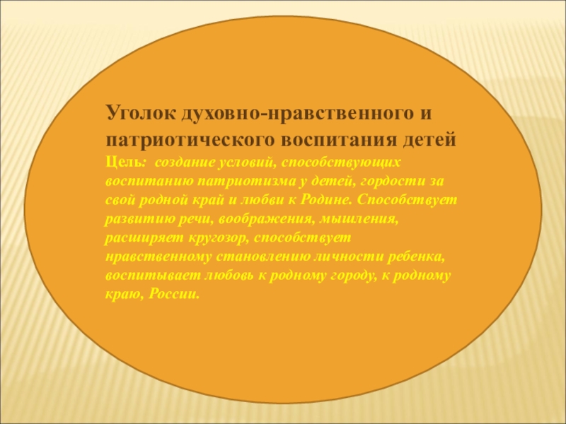у детей, гордости за свой родной край и любви к Родине. Способствует развитию речи, воображения, мышления, расширяет кругозор, способствует нравственному становлению личности ребенка, воспитывает любовь к родному городу, к родному краю, России.