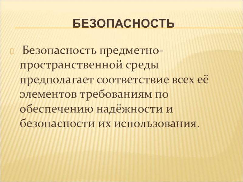 Безопасность предметно-пространственной среды предполагает соответствие всех её элементов требованиям по