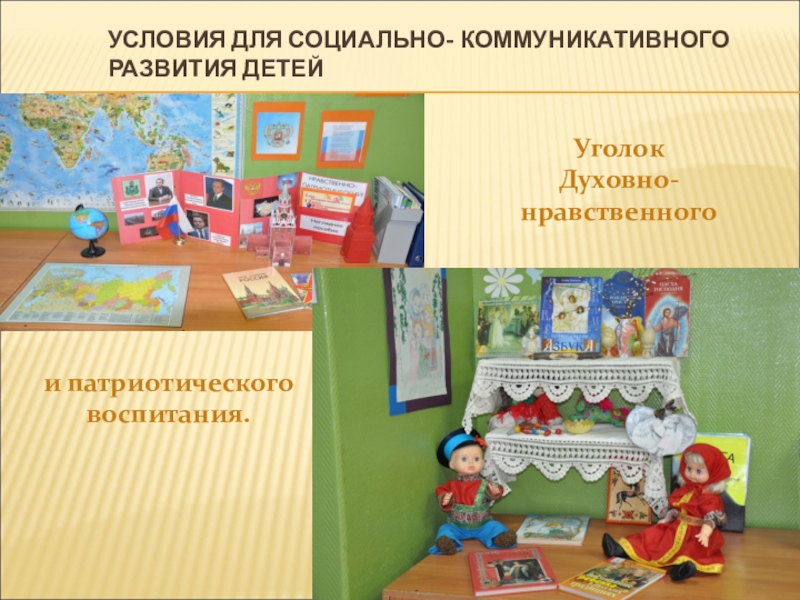 Слайд 11Уголок духовно-нравственного и патриотического воспитания детей