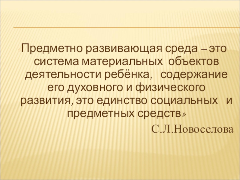 Слайд 30«Предметно развивающая среда – это система материальных объектов деятельности ребёнка,
