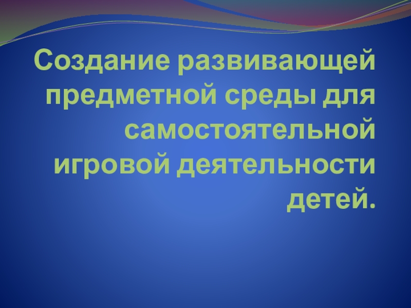 Презентация, доклад на тему Создание развивающей предметной среды для самостоятельной игровой деятельности детей