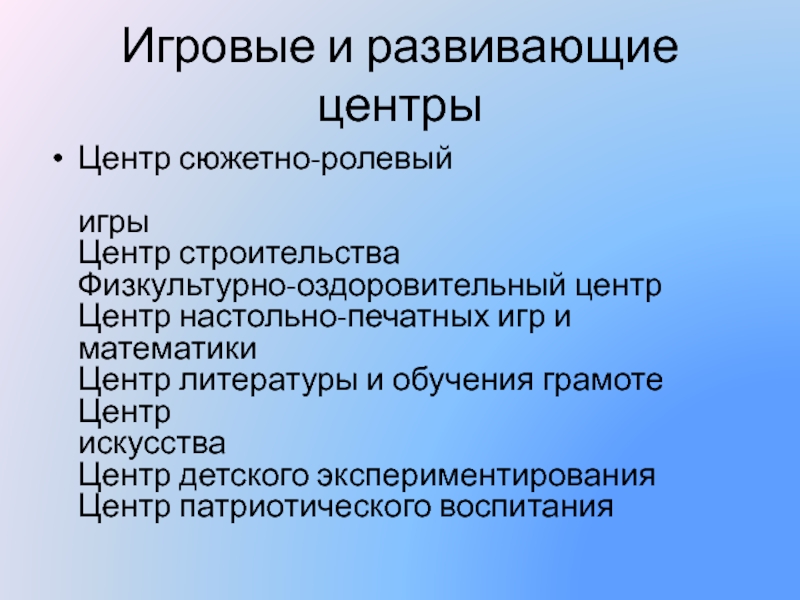 Слайд 15Игровые и развивающие центры