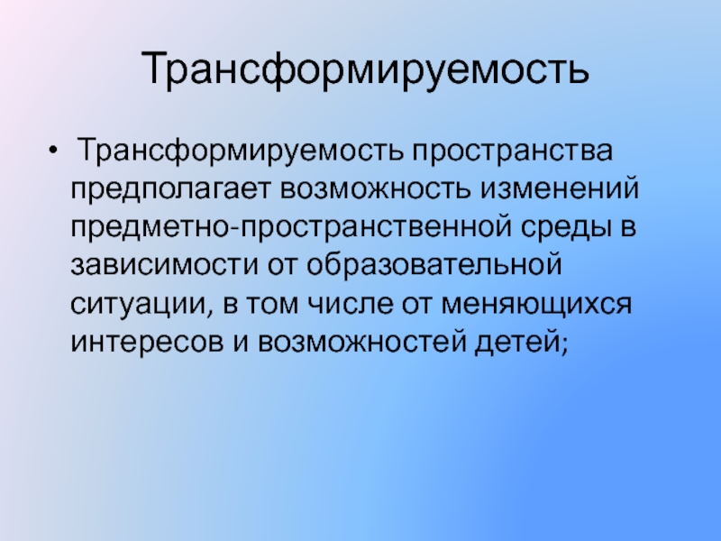 Трансформируемость пространства предполагает возможность изменений предметно-пространственной среды в