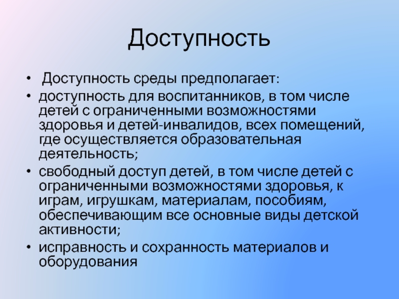 Доступность среды предполагает:
