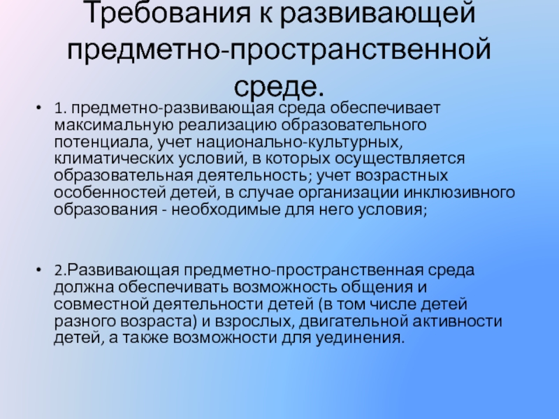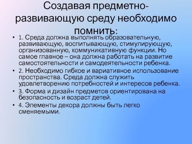 1. Среда должна выполнять образовательную, развивающую, воспитывающую,