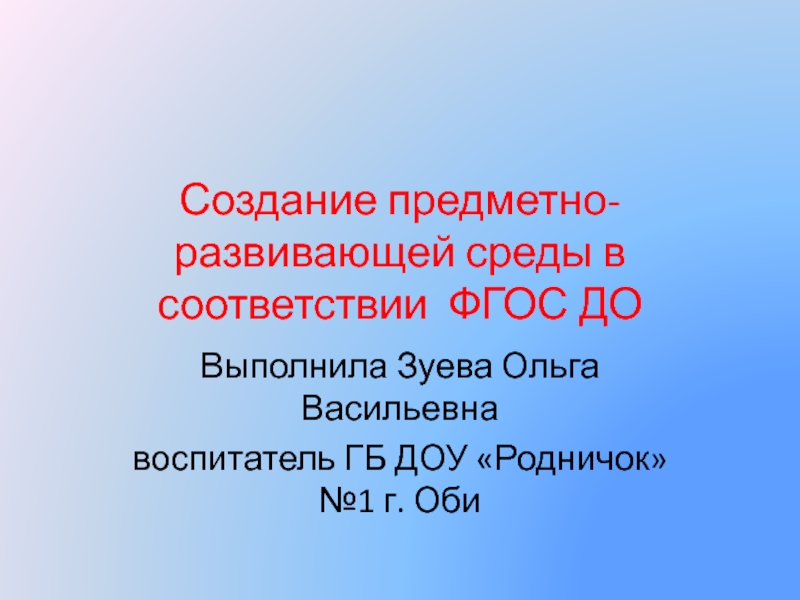 Слайд 1Создание предметно-развивающей среды в соответствии ФГОС ДО