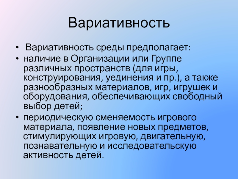 Вариативность среды предполагает: