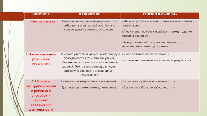 учащихся перед тем, как они приступят к реализации поставленной задачи. Авансировать успех, значит объявить о положительных результатах до того, как они получены. Данная операция увеличивает меру уверенности в себе учащегося, повышает активность и его свободу. (Прием персональной исключительности, основанием служит любое соответствующее предлагаемой деятельности достоинство школьника: физическая сила, четкость мышления, оригинальность восприятия, хорошая память, находчивость и т. п.)