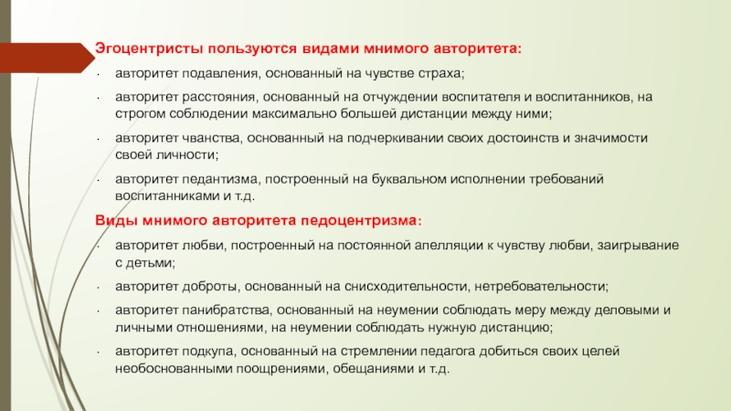 Слайд 6Эгоцентристы пользуются видами мнимого авторитета: