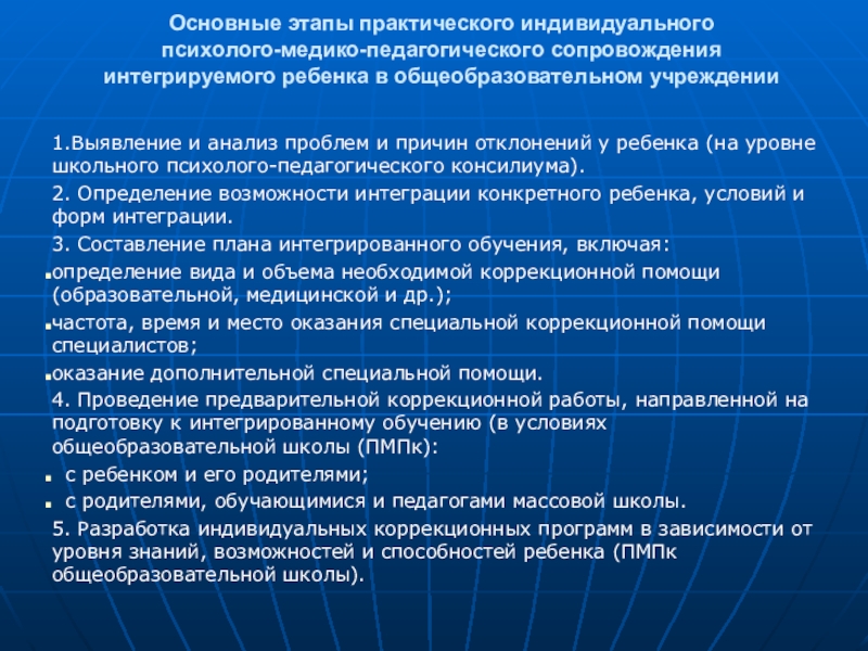 4. Проведение предварительной коррекционной работы, направленной на подготовку к интегрированному обучению (в условиях общеобразовательной школы (ПМПк):