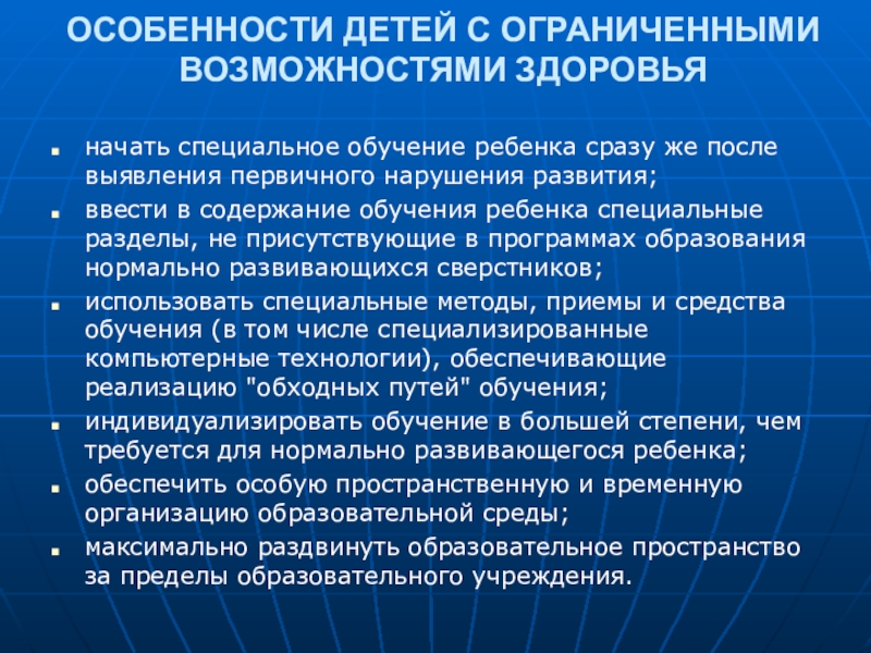ОСОБЕННОСТИ ДЕТЕЙ С ОГРАНИЧЕННЫМИ ВОЗМОЖНОСТЯМИ ЗДОРОВЬЯ