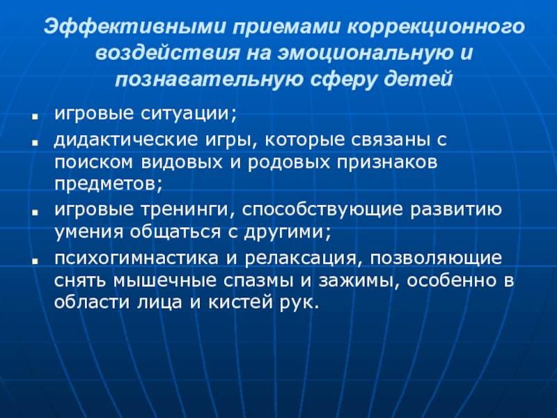 Эффективными приемами коррекционного воздействия на эмоциональную и познавательную сферу детей