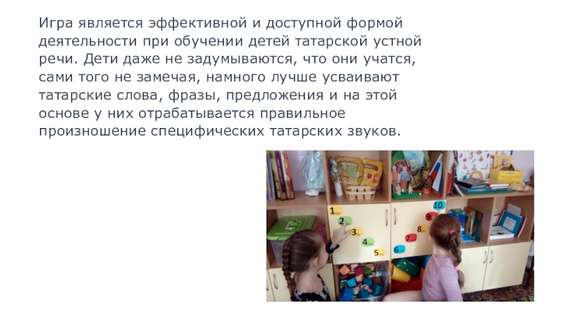 Слайд 6Игра является эффективной и доступной формой деятельности при обучении детей татарской