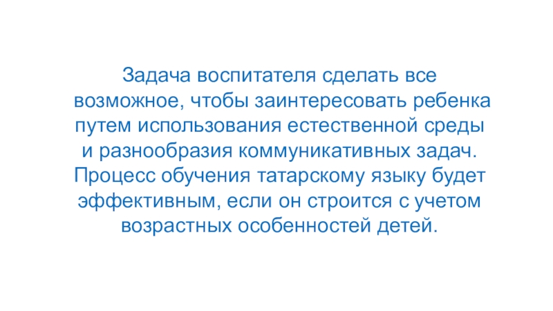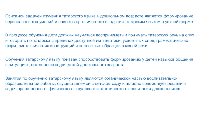 Слайд 5Основной задачей изучения татарского языка в дошкольном возрасте является формирование первоначальных