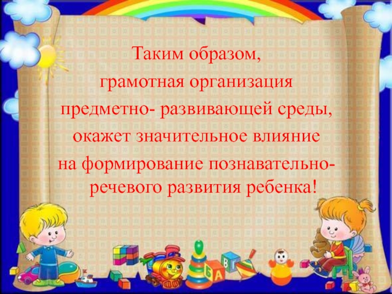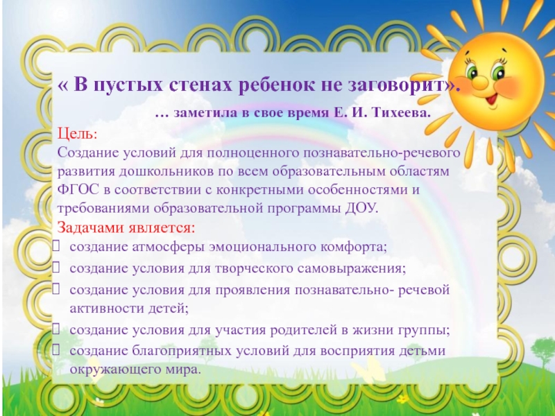 создание благоприятных условий для восприятия детьми окружающего мира.