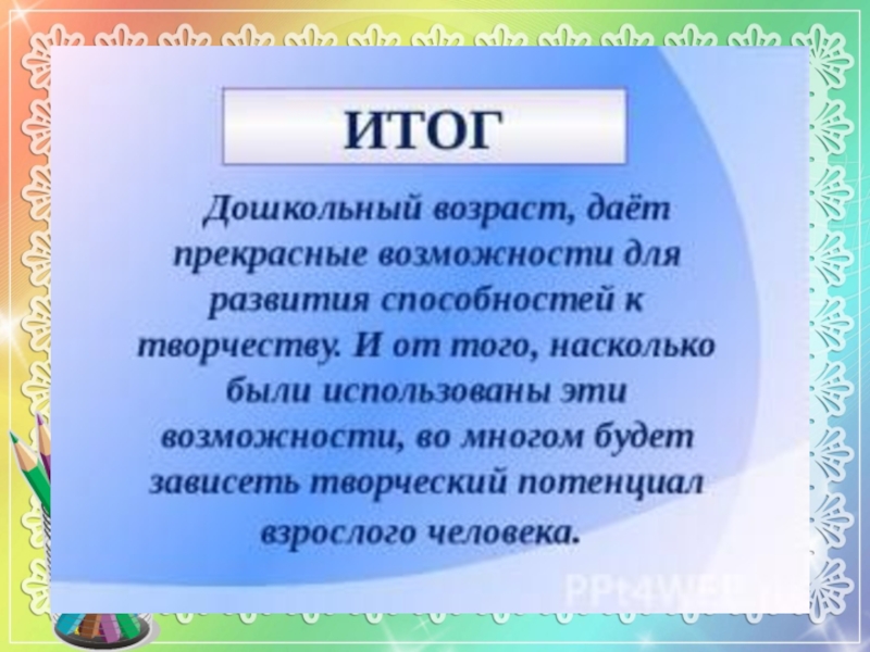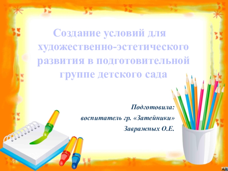 Слайд 1Создание условий для художественно-эстетического развития в подготовительной группе детского сада
