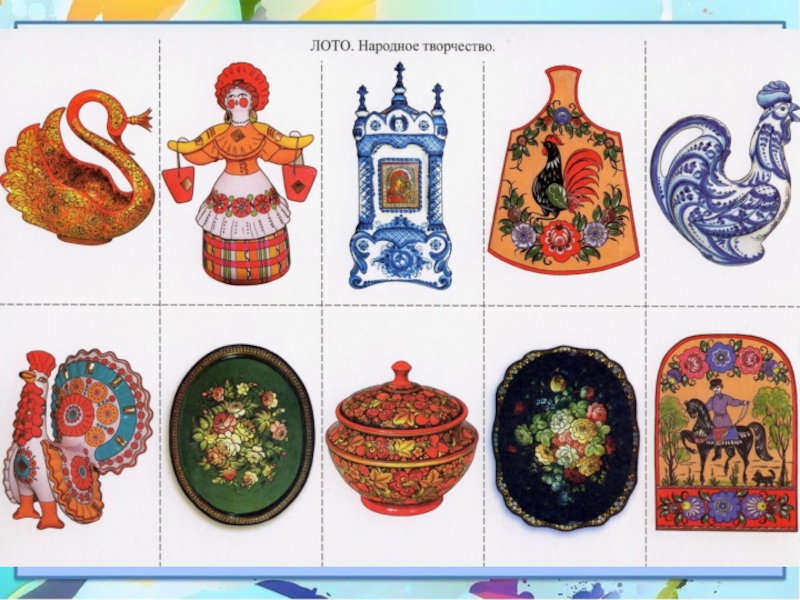 Альбомы по декоративно-прикладному искусству («Гжель», «Хохлома», «Дымка» и др.).