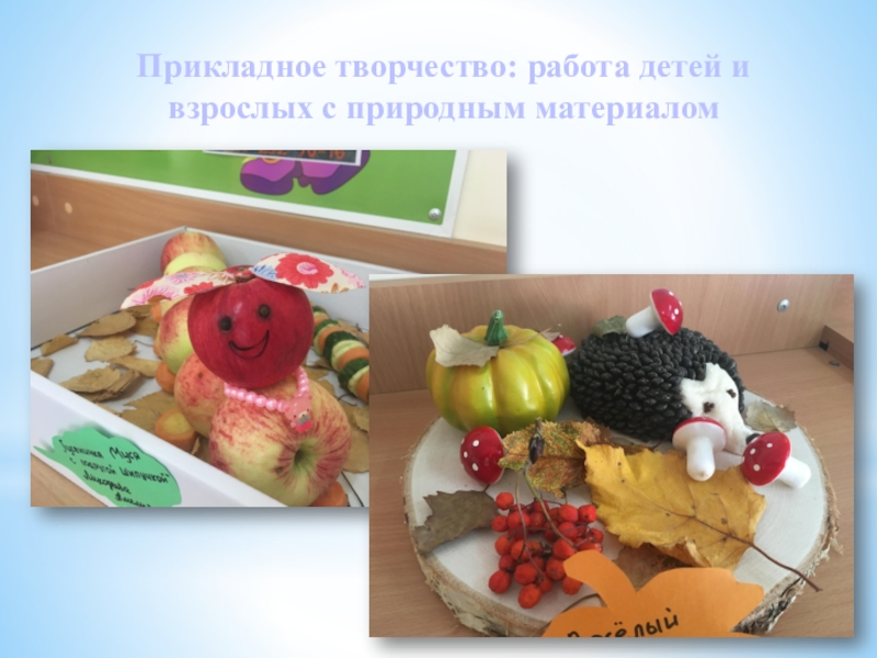 Слайд 20Прикладное творчество: работа детей и взрослых с природным материалом