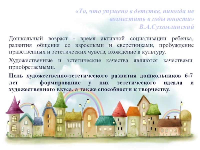«То, что упущено в детстве, никогда не возместить в годы юности» В.А.Сухомлинский