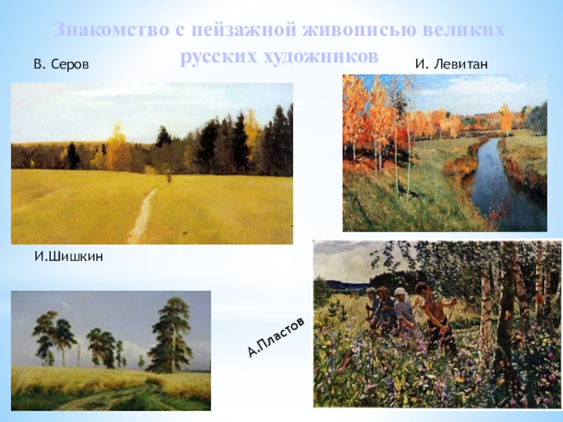 Слайд 14Знакомство с пейзажной живописью великих русских художников