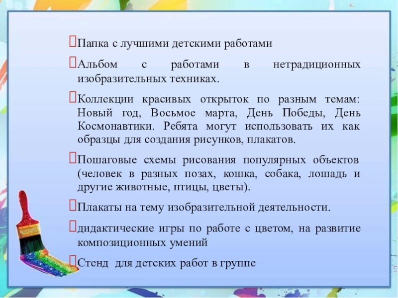 Слайд 13Папка с лучшими детскими работами