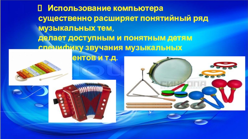 Наглядное пособие: видеофрагменты, презентации, музыкально- дидактический материал.