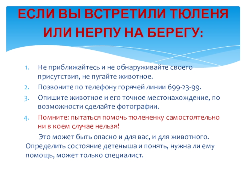 ЕСЛИ ВЫ ВСТРЕТИЛИ ТЮЛЕНЯ ИЛИ НЕРПУ НА БЕРЕГУ: