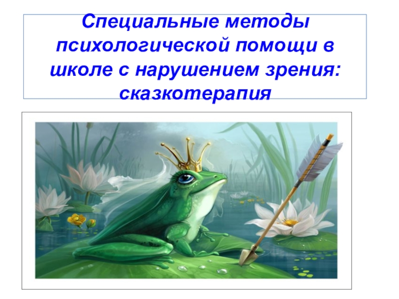 Слайд 1Cпециальные методы психологической помощи в школе с нарушением зрения: сказкотерапия