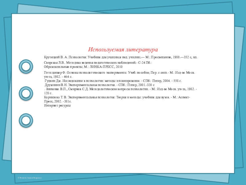 Корнилова Т. В. Экспериментальная психология: Теория и методы: учебник для вузов. - М.: Аспект-Пресс, 2002. -381с.