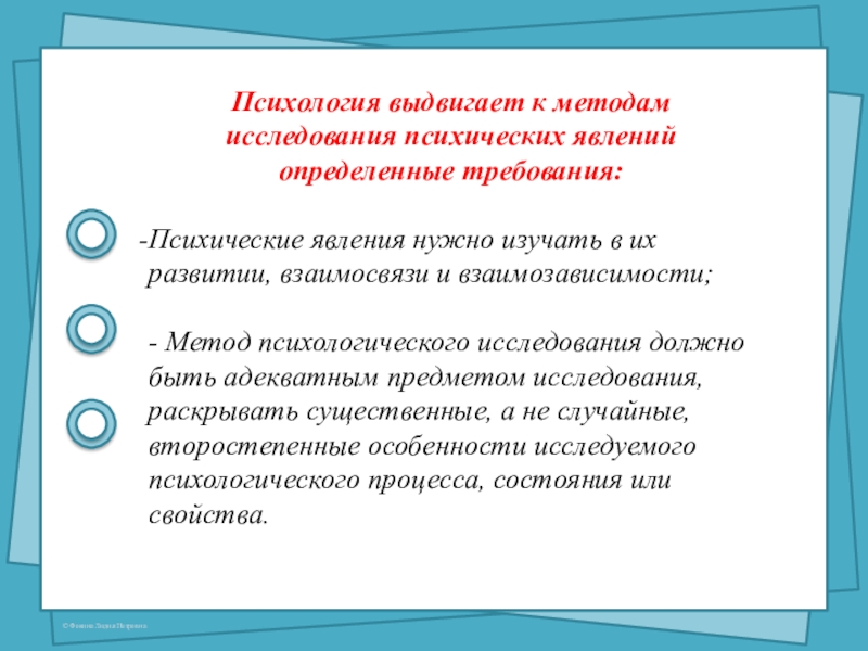 Методы психологии направлены на изучение психических явлений в развитии и изменении. При этом изучаются развитие и изменение психики в истории животного мира, в истории человечества, при возрастных особенностях, под влиянием упражнения, обучения и воспитания, в результате неблагоприятных воздействий внешней среды, вследствие заболеваний.