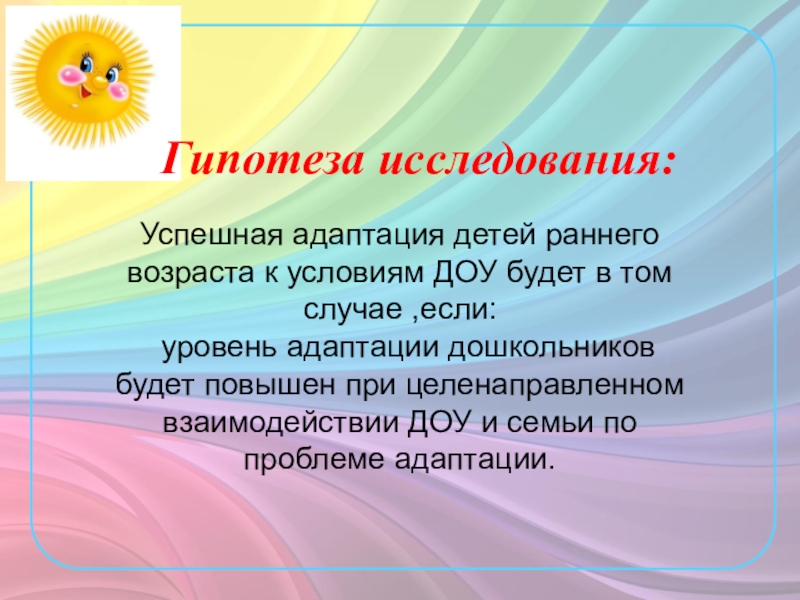 1.Рассмотреть теоретические основы адаптации детей раннего возраста к условиям ДОУ;