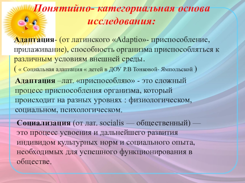 Адаптация –лат. «приспособляю» - это сложный процесс приспособления организма, который происходит на разных уровнях : физиологическом, социальном, психологическом.
