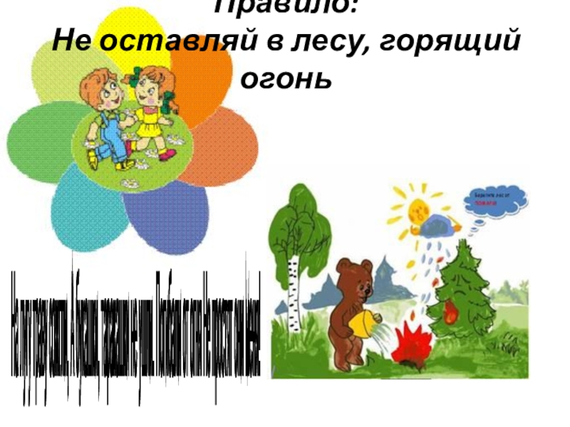 — Правило № 4. Выйдя из леса, обязательно сообщи о пожаре взрослым.