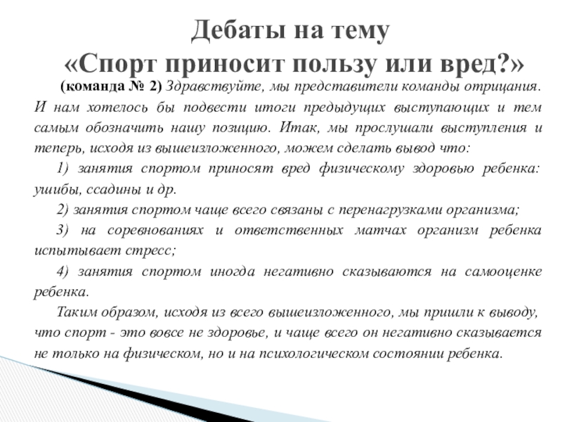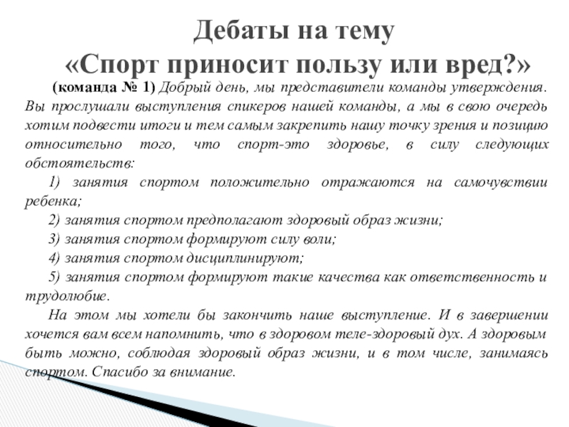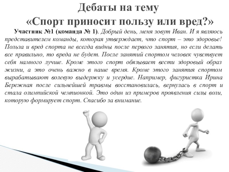 Дебаты на тему «Спорт – это здоровье!?»