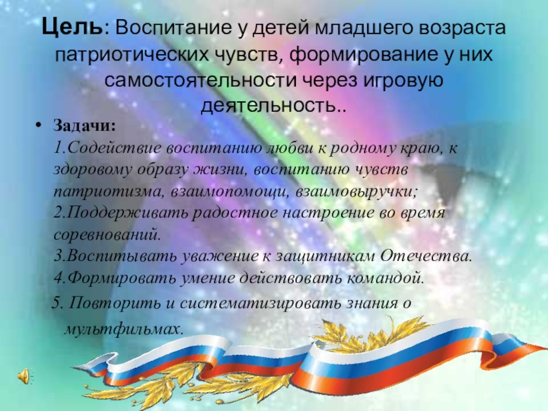 Слайд 2Цель: Воспитание у детей младшего возраста патриотических чувств, формирование у них