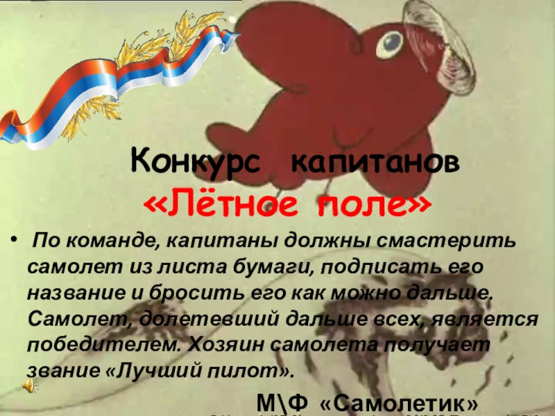 из листа бумаги, подписать его название и бросить его как можно дальше. Самолет, долетевший дальше всех, является победителем. Хозяин самолета получает звание «Лучший пилот».