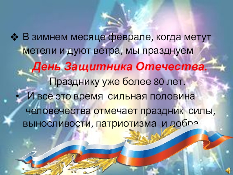 В зимнем месяце феврале, когда метут метели и дуют ветра, мы