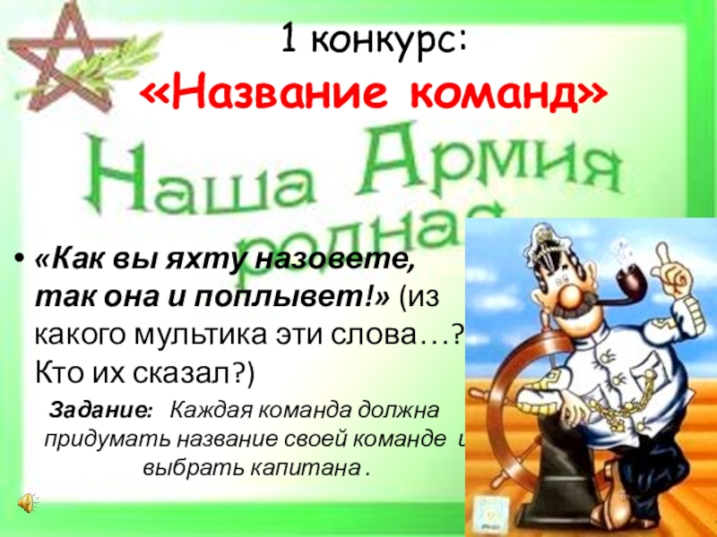 Задание: Каждая команда должна придумать название своей команде и выбрать капитана .