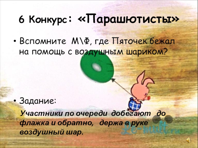 Вспомните М\Ф, где Пяточек бежал на помощь с воздушным