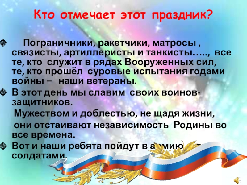 Вот и наши ребята пойдут в армию, станут солдатами.