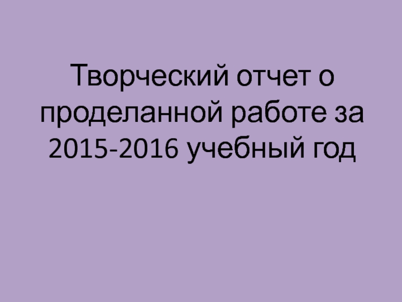 Слайд 1Творческий отчет о проделанной работе за 2015-2016 учебный год
