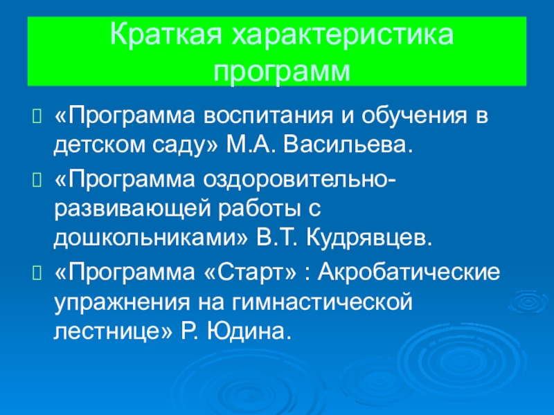 оздоровительно- развивающей работы с дошкольниками» В.Т. Кудрявцев.