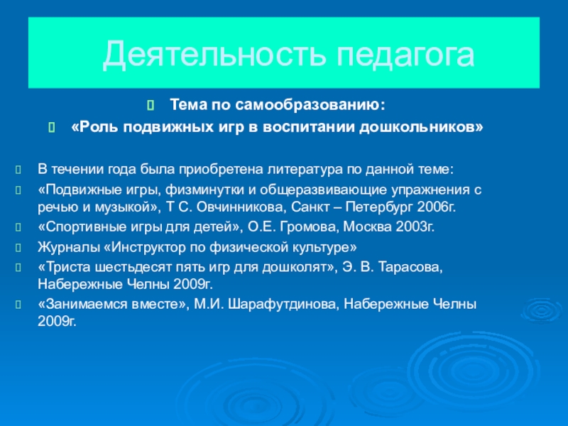 «Подвижные игры, физминутки и общеразвивающие упражнения с речью и музыкой», Т С. Овчинникова, Санкт – Петербург 2006г.