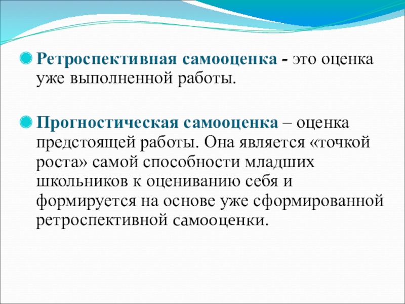 Слайд 3Ретроспективная самооценка - это оценка уже выполненной работы.