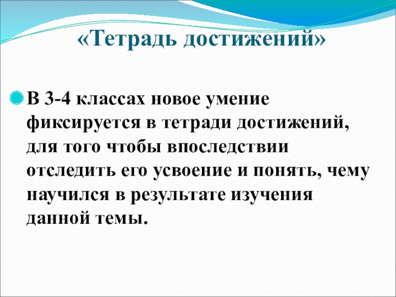 В 3-4 классах новое умение фиксируется в тетради достижений, для