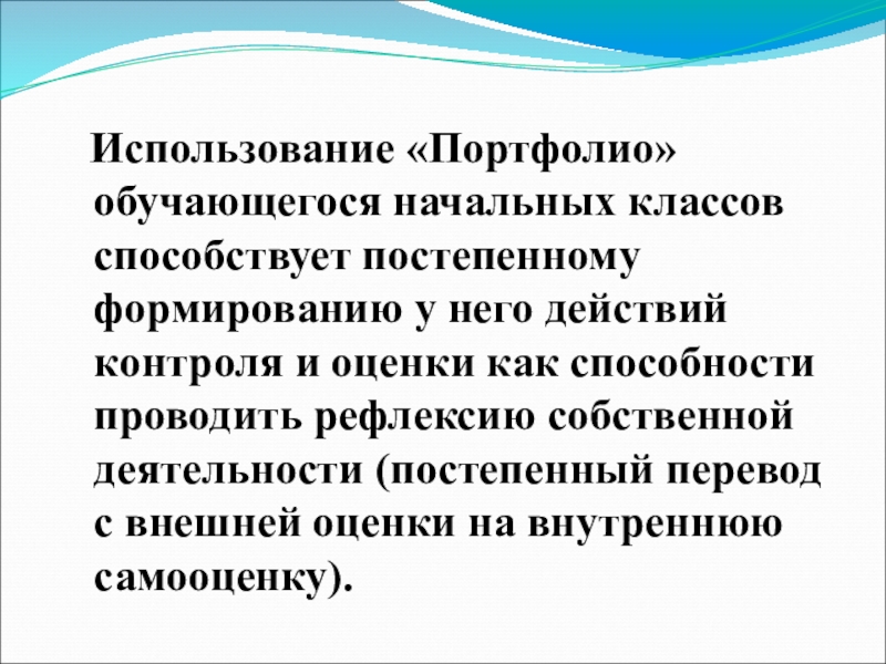 Слайд 26 Использование «Портфолио» обучающегося начальных классов способствует постепенному формированию у него